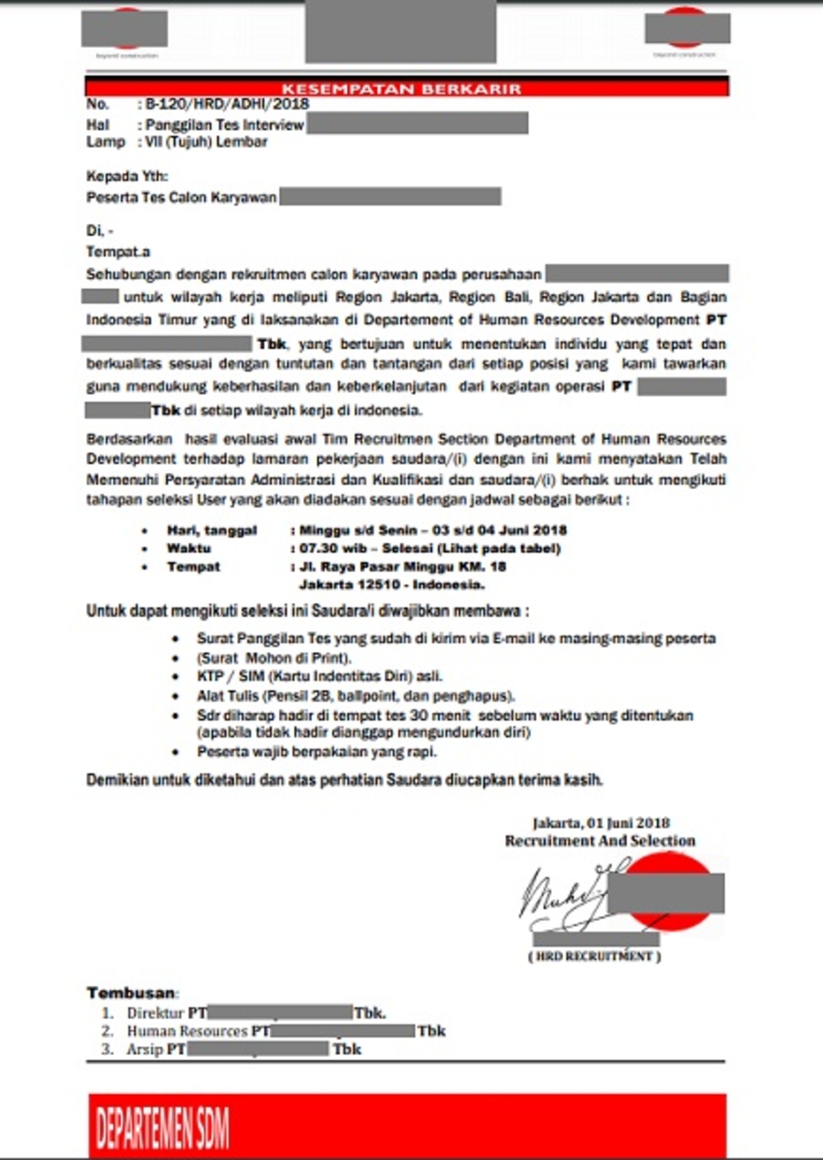Jika anda merasa sudah ada orang yang pas dengan kriteria yang anda butuhkan, maka anda pun bisa membalas surat lamaran kerja tersebut dengan surat undangan test ataupun surat undangan wawancara.